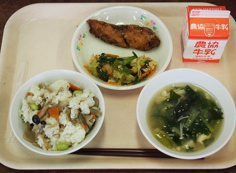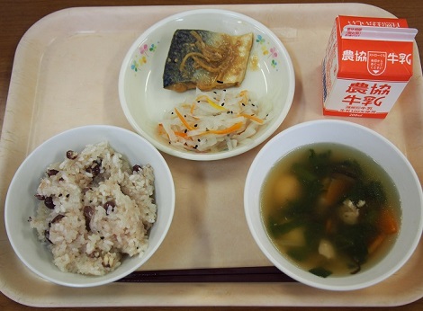 2017年1月11日 13時34分赤飯 牛乳 さばのみそ煮 紅白なます 雑煮