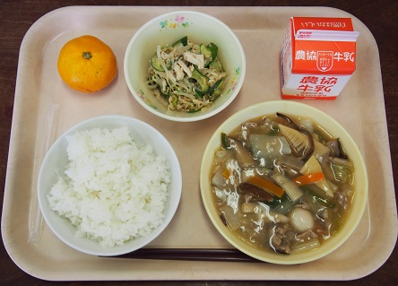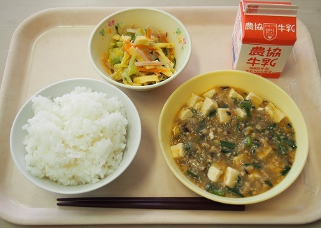 2016年11月28日 17時56分ごはん 牛乳 マーボー豆腐 バンサンスー