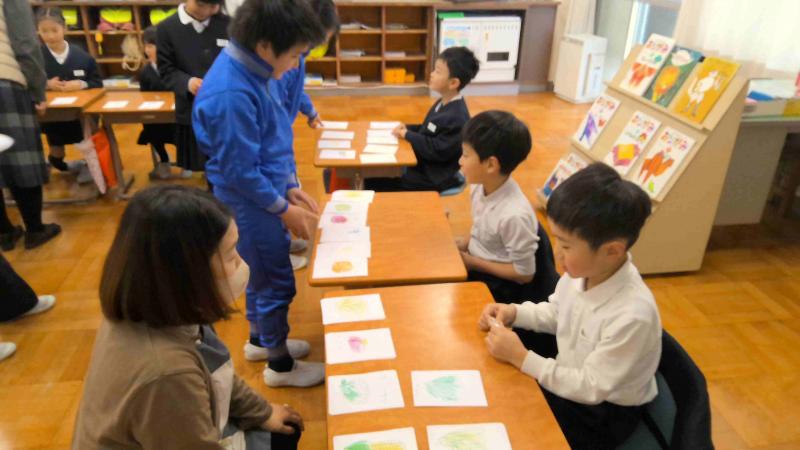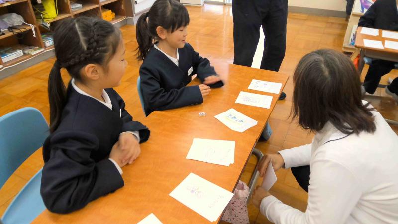 1年生が、4月から入学する年長さんを学校に招待しました。最初に、学校ではどんな先生がいるか、どんな勉強をするのかなど教えました。