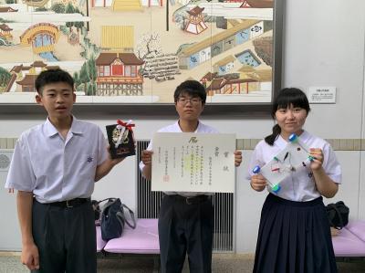 7月27日に行われた「石川県中学生サイエンスチャレンジ」において、2年生3人で編制した小木中学校チームが、競技1・競技2とも、出場チーム中1位の成績をあげ、総合成績で金賞を獲得しました。正式決定・発表は後日ですが、9月30日に行われる「第11回 科学の甲子園ジュニア石川県大会」への出場権の獲得が濃厚になりました。ご協力いただいた皆様、ありがとうございました。
