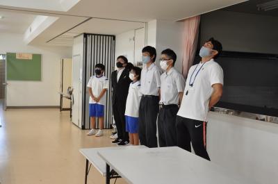 2022年6月17日 17時08分本日、野球部の県体予選に向けて壮行式を行いました。2年間以上「心の中」で歌っていた応援歌も、約3年ぶりに歌いました。「小木中校歌」「九十九湾頭」がランチルームに響きわたり、選手の2人は、明日の試合に向けて決意を新たにしていたようです。