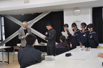 12月4日(水)人権週間に合わせて、「人権教室」を開催しました。能登町人権擁護委員の皆様のご協力で開催することができました。今年は、「高齢者の人権」について考えました。生徒たちも参加した寸劇やお話を通して、お年寄りの苦労や考えていることを理解し、認め合うことでみんなが幸せに生活していくことができるのだと改めて感じました。