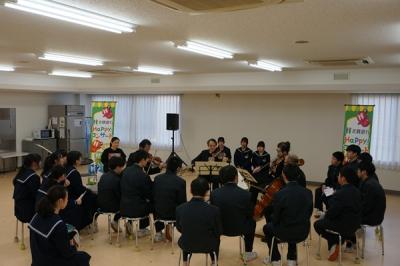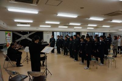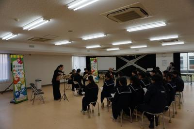 普段のコンサートではできないような演奏者の間近で聞かせてもらったり、一緒に歌を歌ったりもしました。終わりの時には、弦楽四重奏の生演奏で小木中校歌を歌ったりする場面もありました。プロの生演奏や歌声を聞く機会があまりない中、本物に触れて生徒たちは、楽しいひと時を過ごすことができました。