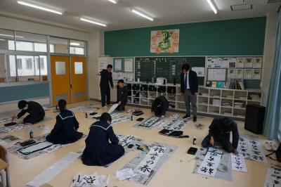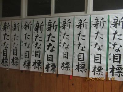 新年最初の日ということで、書初め大会が開かれました。冬休みの練習の成果を発揮できた生徒もたくさん見られました。