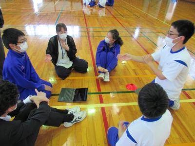 2つ目のプログラムは、「ワードウルフ」です。これは、何人かのグループで、出されたお題についての会話をするのですが、中に違うお題が出された人がいて、会話をしながらその人を探し当てるゲームです。先生方も中に入って一緒にしました。ゲーム中は、あちこちのグループから歓声が上がり、とても楽しそうでした。