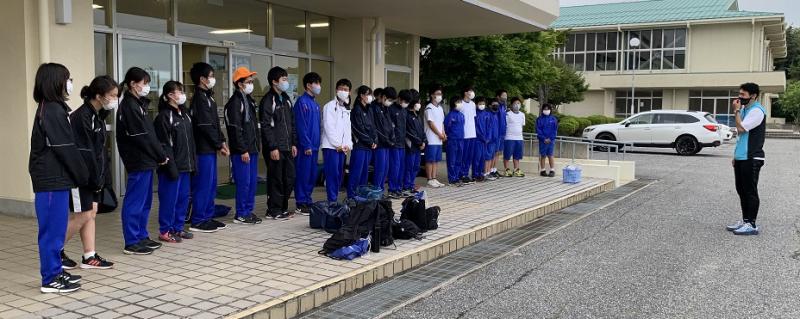 明日5月20日(金)に、七尾市において「全能登中学校陸上競技大会」が開かれます。今日は、その大会に参加する選手への壮行式が開かれました。選手一人ひとりの抱負の発表、応援歌、校長先生からの激励と会は進みました。