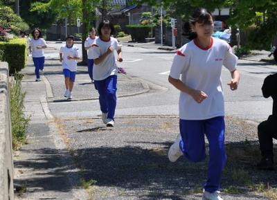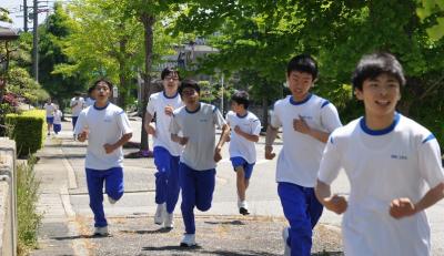 本日、本校生徒の体力アップと津波への防災意識の高揚を目的として、令和4年度第1回「高瀬台地を駆け上がれ」を行いました。海上保安署付近をスタートして本校まで、高低差約45m・約500mの道のりを一気に駆け上がる行事です。スタート前に津波からの避難について事前学習を行ったため、目的意識をしっかり持って走り抜ける生徒がたくさんいました。ゴールの校門では、3年生の作成した「ミニとも旗」が彩りを添えていました。