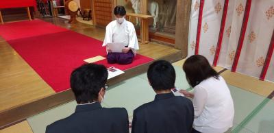 5月26日、3年生が「ミニとも旗」を奉納した御船神社の水嶋宮司さんから、3年生一人ひとりに、奉納の時の写真入りの記念品をいただきました。生徒たちがお世話になったお礼と「ミニとも旗」制作時の感想を書いた手紙を届けたことへのお返しということでした。小木の先人の方々がつなぎ残してくださった祭や文化を通して、小木中学校の生徒が地域の方々に、温かく見守っていただけていることを改めて感じることができました。ありがとうございました。