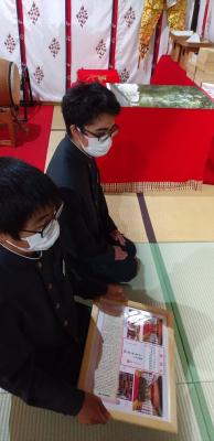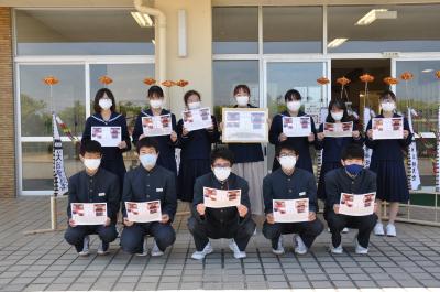 2022年5月27日 13時28分5月26日、3年生が「ミニとも旗」を奉納した御船神社の水嶋宮司さんから、3年生一人ひとりに、奉納の時の写真入りの記念品をいただきました。生徒たちがお世話になったお礼と「ミニとも旗」制作時の感想を書いた手紙を届けたことへのお返しということでした。小木の先人の方々がつなぎ残してくださった祭や文化を通して、小木中学校の生徒が地域の方々に、温かく見守っていただけていることを改めて感じることができました。ありがとうございました。