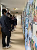 生徒は、小学生の作品の質の高さに驚き、同じ中学生の作品に刺激を受けていました。