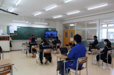 今回は、生徒一人ひとりがタブレットを使い、オンラインでお話を視聴しました。