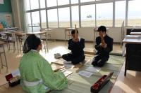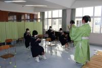 竜笛(りゅうてき)・笙(しょう)・篳篥(ひちりき)による音色で、参加した1年生は「雅の世界」へ引き込まれていました。