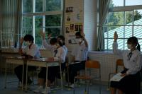 10月7日(木)の6限目に、後期生徒総会が行われました。後期生徒会目標は、「唯輝笑伝(いきしょうてん)~enjoy the school life~」に決定しました。この目標には、自分たちの願っていることが叶い、小木中生徒全員が輝き、笑顔が飛び交うような挨拶で活気を届けるという思いが込められています。新型コロナウイルス感染症の影響で、後期の学校行事も例年通りには行えません。そんな中でも、笑顔や挨拶を大切にし、全員が充実感のある後期にしていきましょう。