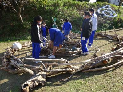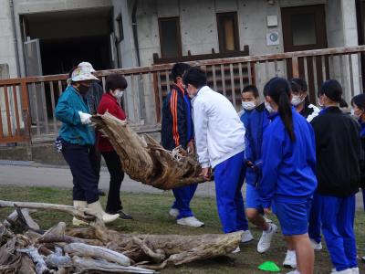 1年生が海洋ふれあいセンターで「漂流物アート」にチャレンジしました。