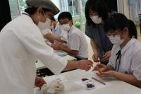 今回制作したのは、ひまわりとアサガオです。生徒は、包餡やもみあげなど職人の技を間近で見ながら、上手に和菓子をつくることができました。実際に職人の技を見たり、体験したりすることで、和菓子づくりという職業にも関心をもったようです。