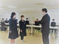 始業式の後,アンサンブルコンテストの表彰式がありました。昨年12月13日に行われたコンテストでは,コロナウィルス感染症予防のため,結果発表などは行われませんでした。
