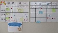 2つ目の取組は,「自分で課題を決めて学習する内容を可視化すること」です。自分で計画を立てた学習内容をしっかりと実行できるように,ボードに名前の書かれたマグネットを貼っています。先生方もアドバイスがしやすくなりました。