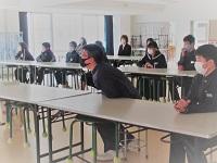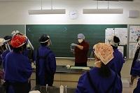 11月26日に,2・3年生がイカ料理教室を行いました。地元の講師の方に小木船凍イカを刺身にする調理を教えていただきました。小木といえばイカの町なのですが,中学生はなかなか家でイカを調理する機会もないようです。今回初めての調理ということもあり,不安もあったようですが,講師の方に丁寧に教えていただいたことで,全員がきれいなイカの刺身を作ることができました。学校では残念ながら生の魚を食べることはできないので,刺身にしたものをきのこと一緒にホイル焼きにしていただきました。さすが小木のイカ!自分で作ったこともあって,とてもおいしかったです。