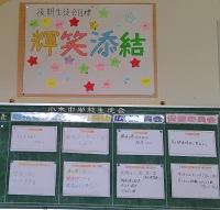 後期の生徒会スローガン「輝笑添結」のもと,25名が協力して生徒会活動に取り組んでいます。日常の中で何気ないことですが,各委員会活動がしっかりと取組をすることで安心して楽しく学校生活ができています。10月,保健委員会は「目を大切にするための呼びかけとチェック」に,広報委員会は「リクエスト曲」に,図書委員会は「新刊アンケート」に,そして総務委員会は「文化祭の準備」にしっかりと取り組むことができました。