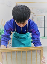 1月21日(火)の午後、3年生は小間生公民館で卒業証書の紙漉き体験をしてきました。みわ会の方々に教えていただき、一人ひとりが自分の卒業証書を漉きました。
