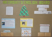 また、今月のトム先生の掲示は、クリスマスでした。クリスマスはイエスキリストの誕生を祝う日です。アメリカでは、家族でツリーを飾るなどして過ごすそうです。トム先生の掲示でアメリカの風習や文化を学ぶことができますね。