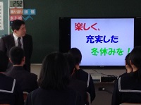 25日(水)からは冬休みです。14日間の冬休みが有意義なものとなるように、校長先生からお話のあった4点についてしっかりと守り、1日1日を大切に過ごしてほしいです。