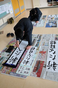 5・6限目には、書き初め大会が行われました。生徒たちは真剣に向き合い、冬休みの練習の成果を発揮していました。なかなか満足できる作品を仕上げることは難しかったようですが、どの作品も気持ちのこもった素晴らしいものでした。