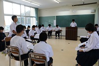 今日は、後期の生徒総会が開かれました。各委員会から提案された活動計画について多数の意見や質問が出され、後期の委員会活動の方向性が決定しました。 また、11月9日には文化祭が予定されており、文化祭の全体計画や組織について生徒全員で確認をしました。