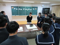 17日(木)の午後,1年生と3年生はのときんぷらで開催されている「おでかけ美術館」に行きました。輪島漆芸美術館の出張美術館で,作品鑑賞と輪島塗の行程を学習しました。また,ストラップ作りも体験し,とても楽しい時間を過ごしました。生徒たちは細かい沈金の技法や螺鈿の作品に「すごい!」「きれい!」などと感動していました。また,ストラップでは,思い思いの図柄で作品を作っていました。