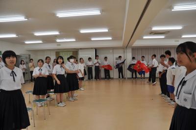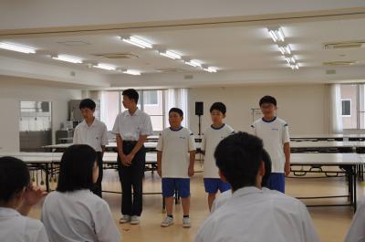 部員一人ひとりが明日の試合に向けた意気込みを全校の前で発表しました。生徒会と校長先生からの激励の言葉や全校での応援歌で盛り上げることができました。みんなの期待を背負って、明日の試合では活躍してくれることを祈っています。