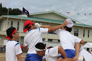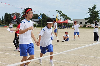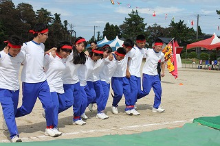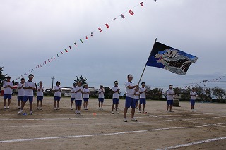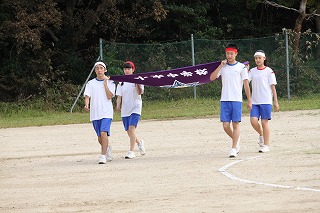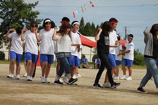 雨天のため予定より4日遅れた12日(水)、平成30年度の小木中体育祭が行われました。準備段階でのコミュニケーション不足や雨天続きで外での練習ができなかったなど、不安なことはたくさんありましたが、当日は39人の生徒一人一人が輝きを放つ体育祭となりました。開会式の奥成生徒会長の「災害続きで各地に被災された人々がおられる中で体育祭を開催できることに感謝したい」という言葉や、閉会式での四方副会長の「それぞれの団旗に描かれた"鳳凰”のようにきらめき、"白虎”のようにつきすすんでいく生徒会にしたい」という言葉に中学生としての成長や今後の決意を感じることができました。
