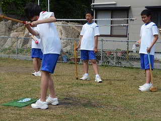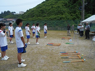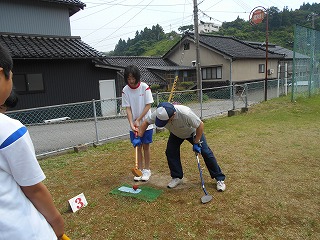 26日(火)は1年生が小木地区の老人会とグラウンドゴルフで交流しました。これは小木地区の防災活動を行う際、少しでも顔がわかっていれば避難活動もスムーズに進むという考えから、日ごろからの地域との結びつきを強める活動の一つとして取組んでいるものです。しかし、生徒はお年寄りが瞬間にみせる“本気”に頼もしさを感じているようでした。