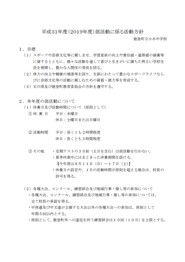 トップページ 今月の予定 今日の小木中 今日の給食 おたより 部活動 学校紹介 本校の歴史 校歌・応援歌 学校経営ビジョン 職員組織一覧 学級編成 いじめ防止基本方針