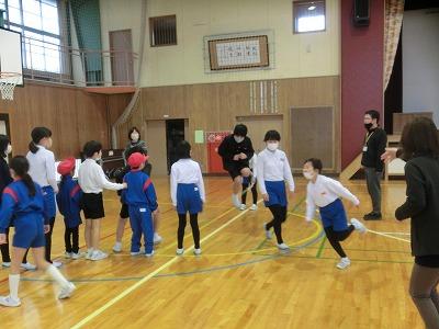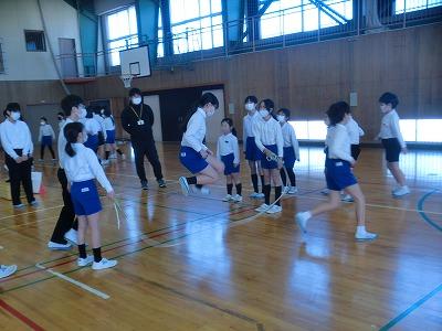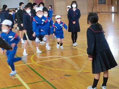 本日長休みに、なかよし班白組の8の字とび練習がありました。赤組に負けないように頑張って練習していました。とても寒い日でしたが、子どもたちはとても元気でした。