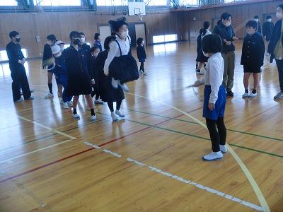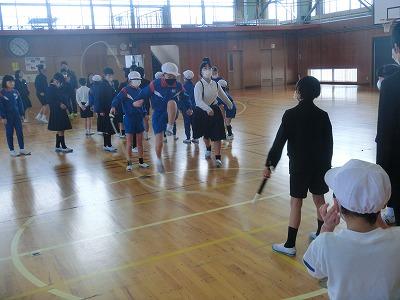 本日、8の字跳び大会となかよし班のお別れ会が行われました。まず、8の字跳び大会が行われました。3分間で何回跳べるか、それを各チーム2回ずつ実施し、合計回数で競いました。その結果赤組がわずかな差で勝利しました。どのチームも練習の時より上手に跳んでいたと思います。その後に行われたお別れ会では、次のリーダーになる5年生がしっかり6年生からバトンを引き継ぎました。
