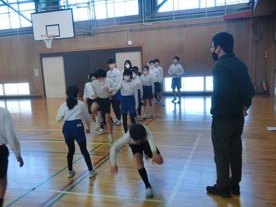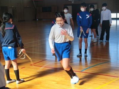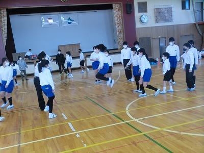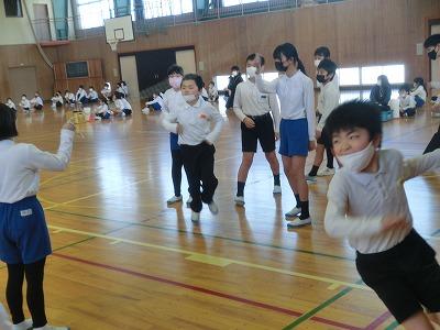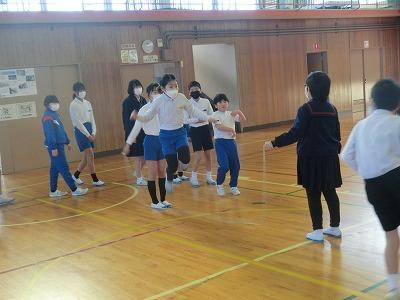 6年生を送る会も終わり、在校生が6年生と一緒にいられる日も残りわずかになりました。それで、月末になかよし班で8の字跳び大会を行います。今日の長休みに赤組のなかよし班が体育館で8の字跳びの練習を行いました。タイミングを合わせてたくさん跳んでください。