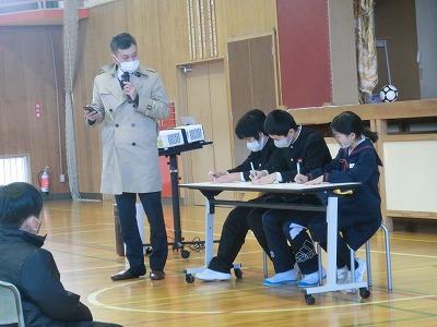 本日、今年度最後の授業参観でした。多くの保護者の方々に来校していただき、誠にありがとうございました。授業参観に続いて、学校保健委員会を体育館で行いました。今年度のテーマは「目いい探偵コナン~大切な目を守ろう~」で、近年、視力の低下が著しいため、目の健康について考える機会としました。健康委員会の劇の後、イプラスジム福井の宮谷伸一氏を講師としてお招きし、視力とビジョントレーニングについてお話していただきました。とても興味深い内容で、ぜひご家庭でも実践してほしいと思いました。その後、各学年ごとに学級懇談会、6年生は中学進学に向けて制服採寸を行いました。天候が心配されましたが、いい天気の中、最後の授業参観が行えてとてもよかったと思いました。
