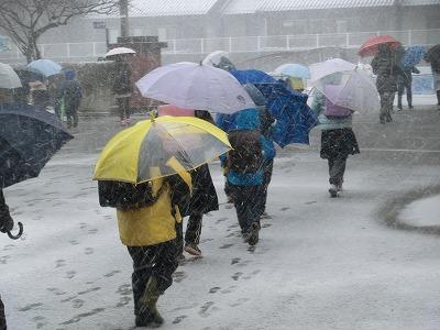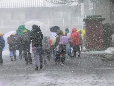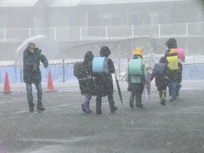 本日、吹雪による悪天候のため、下校時刻を早め、1~6年揃って集団下校で帰りました。翌日(1/25)も大雪の予報が出ており、児童の安全確保のため臨時休校としました。不要不急の外出は控え、家のお手伝い等をしながら、一日過ごしてほしいと思います。