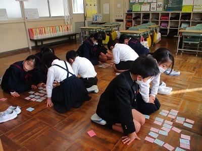 本日、3,4年生が百人一首大会を行いました。しっかり覚えてきた児童は、上の句が詠まれると素早く反応して札を取っていました。決勝戦はとても白熱した様子で、来年以降がさらに楽しみになりました。