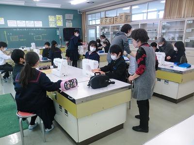 本日、5年生は5,6限目に地域のミシンの先生に教えていただきながら、ミシンの使い方を教わりました。これから、エプロンを作るために、まず、ミシンを使えるようになろうと、子どもたちは一生懸命に取り組みました。初めて使う子がほとんどで、緊張しながら練習していました。