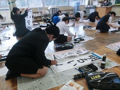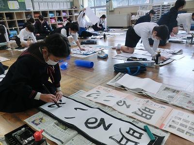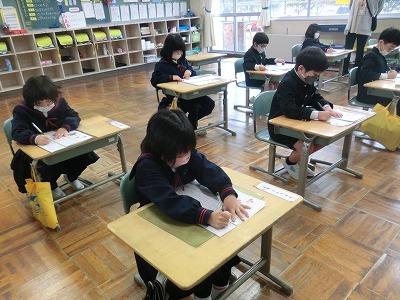 始業式に続いて書初め大会を行いました。冬休みの間、家でしっかり練習してきた成果を発揮していたと思います。どの子も集中して、とても丁寧に書いていました。子どもたちの素敵な作品は各教室前の廊下に展示してあります。保護者の方のための展示期間は1/11(水)~1/12(木)の16:00~17:00です。どうぞご覧になってください。