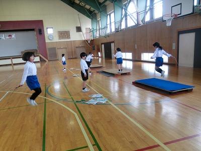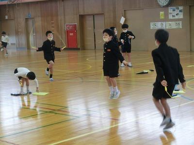 冬の間の体力づくりを目的に、なわとびチャレンジがスタートしました。子どもたちは、新しい技を習得するために一生懸命練習に取り組んでいます。密を避けるために、体育館使用割を決めて取り組んでいます。長休みに体育館に行ってみると低学年が練習していました。寒さに負けず頑張ってください!