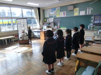 3限目には、1年生が2月に行われる「新一年生を迎える会」のための音読劇の練習をしていました。「たぬきの糸車」の音読劇です。とてもかわいらしくて見ていて心がほっこりしました。本番がとても楽しみです。