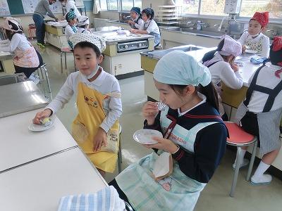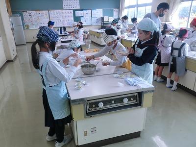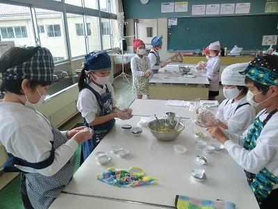 先日、2年生がかほっくりの収穫体験を行いましたが、その時にいただいた「かほっくり」を使って「スイートポテト」作りを行いました。ゆでたサツマイモをつぶしてこねる作業を楽しそうにしていました。その後、オーブンで焼きましたが、いいにおいが辺りに立ち込めると「早くできないかなあ」とオーブンの中を何度も見に行く姿がかわいらしかったです。できあがったスイートポテトをみんなでおいしくいただきました。職員室にも持ってきてくれて、先生方もおいしくいただきました。ありがとうございました。