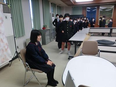 本日、6年生が卒業写真の撮影を行いました。朝自習の時間に玄関前で職員と一緒に撮影しました。その後、会議室に移動して個人写真も撮影しました。なかなか笑顔になれない児童もいましたが、カメラマンの楽しい声かけで徐々に笑顔が見られるようになりました。仕上がりを見るのがとても楽しみです。