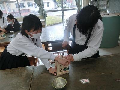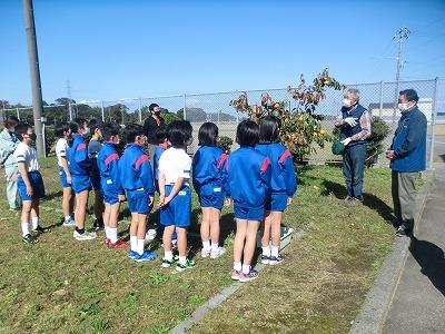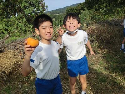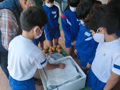 3年生は総合的な学習の時間に「大海の自慢を見つけよう」の学習テーマで「紋平柿」について学習しています。昨日(10/27)は、本校学校CNの池田さんの畑で紋平柿の収穫体験をしました。たくさんの柿を収穫できて、大満足の様子でした。そして本日(10/28)は、5年前に本校運動場に植樹した紋平柿を収穫し、昨日収穫した紋平柿といっしょに脱渋も体験しました。いつも学校の紋平柿をお世話してくださっている谷口さんと森さんに指導していただき行いました。今回、アルコールで脱渋しましたが、他にも脱渋の方法があることを聞いて、子どもたちは興味津々の様子でした。