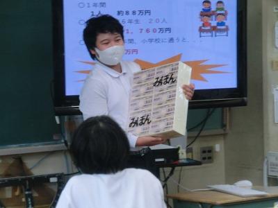 いよいよ11月です。今年も残り2か月となりました。1限目は学校集会で表彰伝達を行いました。夏休みから10月にかけて表彰された子供たちがステージに上がり、全校児童の前で改めて表彰されました。中には、県知事賞など、県レベルで表彰された児童もいて、大海っ子の頑張りをさらに感じることができました。5限目には県税事務所の方々に来校していただき、6年生を対象に租税教室を実施しました。将来の納税者として、税の必要性についてわかりやすく説明していただきました。子供たちは、1億円の札束を持たせてもらい、「おもーい」と歓声を上げていました。