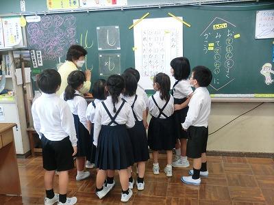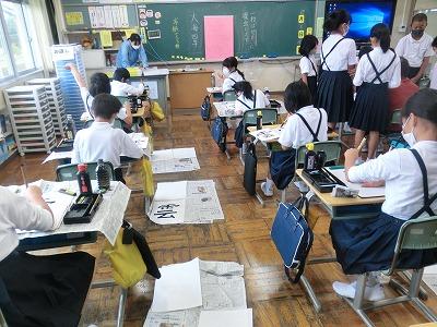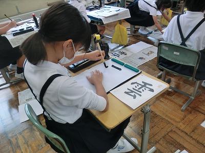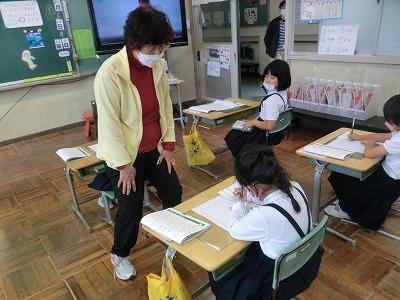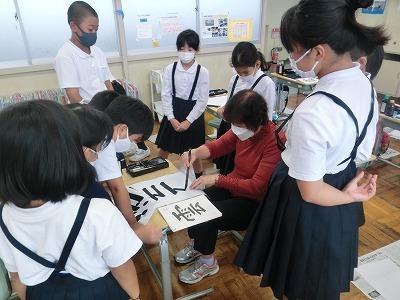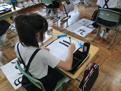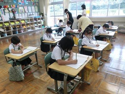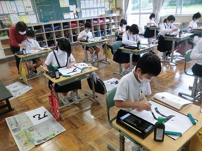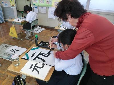 今、児童は河北郡市書写作品展に向けて練習を行っています。そこで、地域の先生である城村先生にご来校いただいて、書写指導をしていただきました。1限目は3年生、2限目は4年生、5限目は1年生でした。真剣な表情で、一生懸命に字を書く様子は、とても凛々しく感じました。他の学年は、また別の日に指導していただきます。