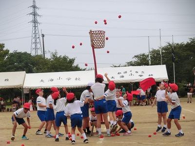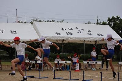 本日、大海小学校秋季大運動会を実施しました。途中、小雨が降る天候でしたが、それを感じさせない子どもたちのやる気・意欲にあふれる素敵な運動会になりました。3年ぶりに団体競技を復活させたこともあり、とても熱気のある雰囲気の中で競技が進んでいきました。また、団体演技では、それぞれ低・中・高学年らしいすばらしいパフォーマンスが繰り広げられました。また、保護者の皆様には前日準備から当日のご声援・後片づけまでご協力いただき誠にありがとうございました。