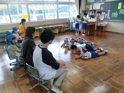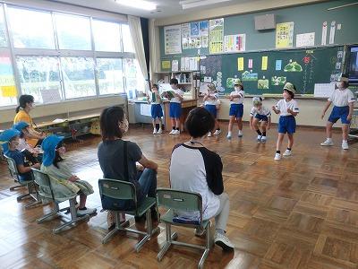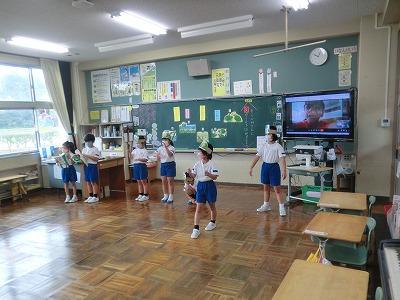 10月に入り、学校生活も後期がスタートしました。大海こども園の園児をお招きして、1年生が「やくそく」の音読劇を披露しました。とてもはっきりとした声で、あおむしの動作も取り入れて、すてきな音読劇でした。こども園の園児も楽しそうに見ていました。1年生の成長をとても感じる音読劇でした。